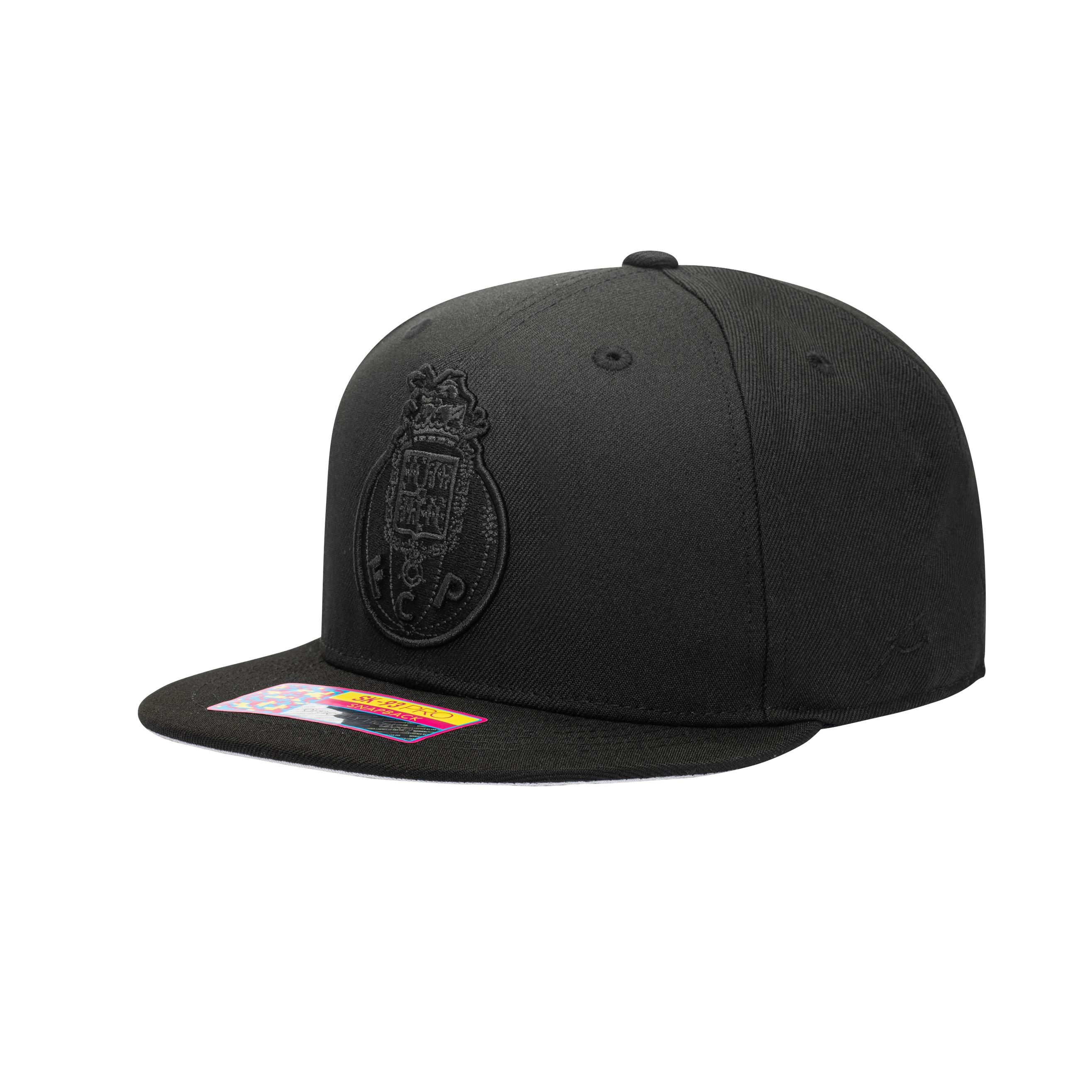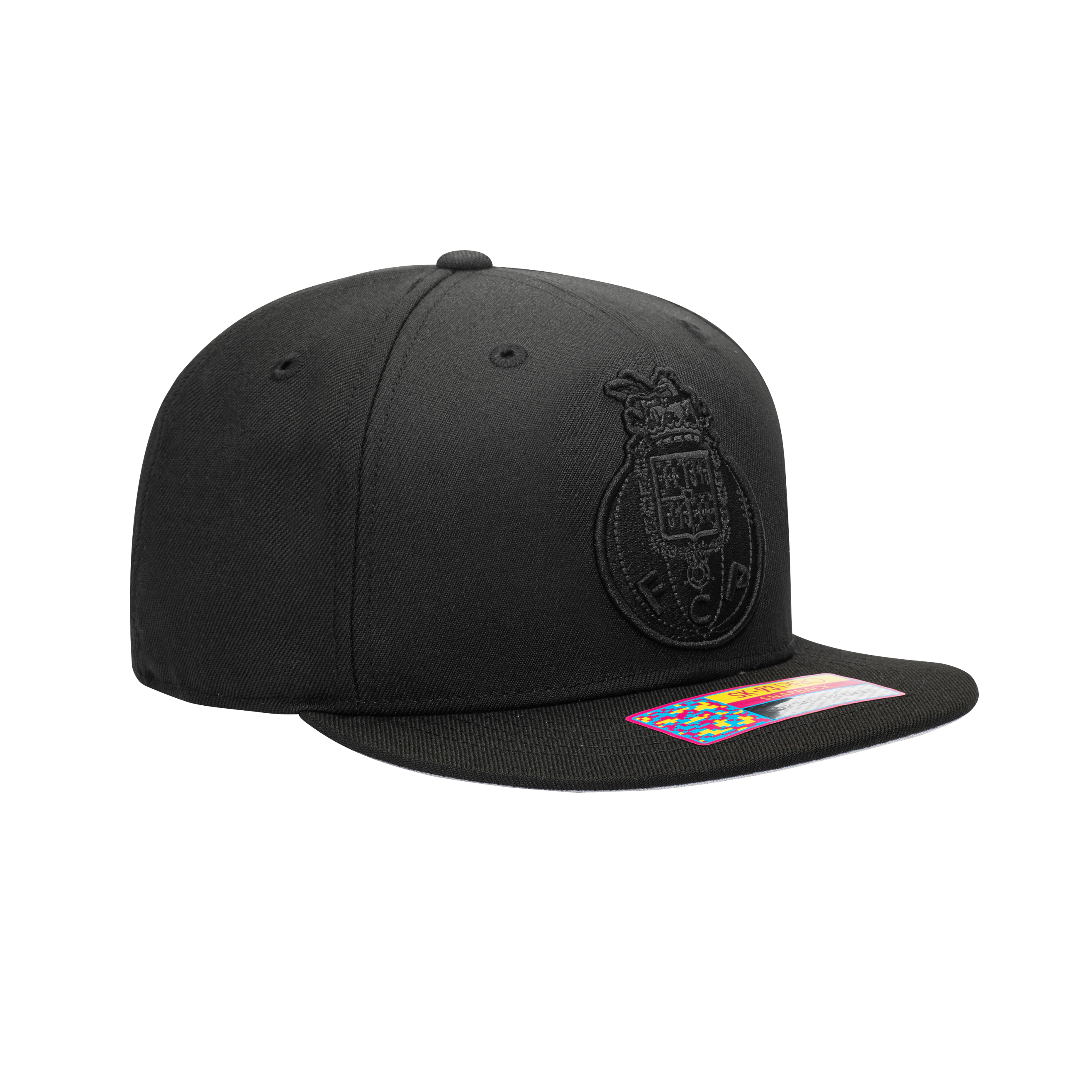 The FC Porto Dusk Snapback hat lets you show your support in style for the "Dragoes", one of the most decorated Portuguese teams! This Dusk hat features a front 3D embroidery of the team logo as well as a back embroidery of the year the team was founded. It uses black embroidery on a black hat to subtly show your support for your team! The hat has a contrasting grey underpeak.